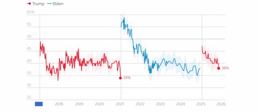The most visible strain is on the economy. Only 26% of Americans approve of Trump’s handling of the cost of living , down from 29% just two weeks ago.